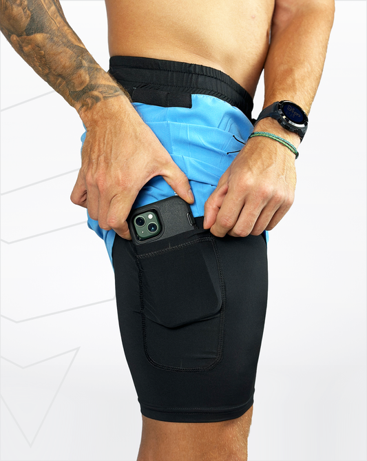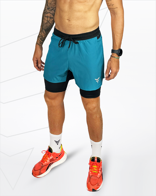 Pantalonetas 2 en 1 running con licra interna y tela de secado rápido.